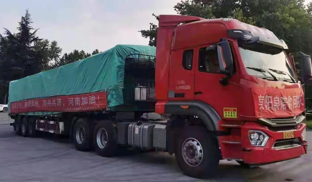 ? ? ? 今年7月中旬,河南省出現(xiàn)持續(xù)性極端強(qiáng)降雨,造成鄭州、新鄉(xiāng)、安陽(yáng)、鶴壁等多個(gè)縣市、鄉(xiāng)鎮(zhèn)受災(zāi)。河南人民群眾的生命和財(cái)產(chǎn)安全受到威脅。洪水肆虐,災(zāi)情牽動(dòng)著全國(guó)人民的心。2021年7月25日,吉林森工集團(tuán)泉陽(yáng)泉飲品有限公司從泉陽(yáng)工廠整裝出發(fā),穿越1800公里,馳援鄭州,為河南人民送去必要的救災(zāi)物資。