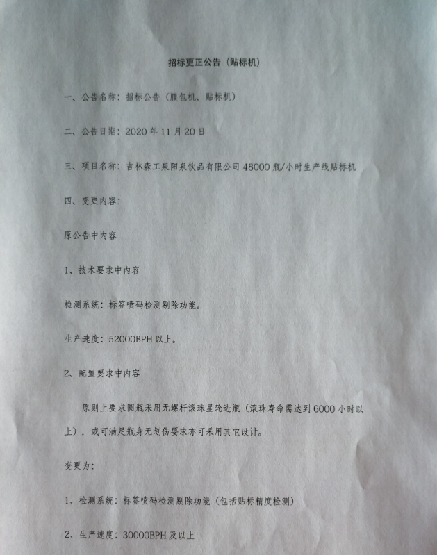 招標(biāo)公告(膜包機(jī)、貼標(biāo)機(jī))