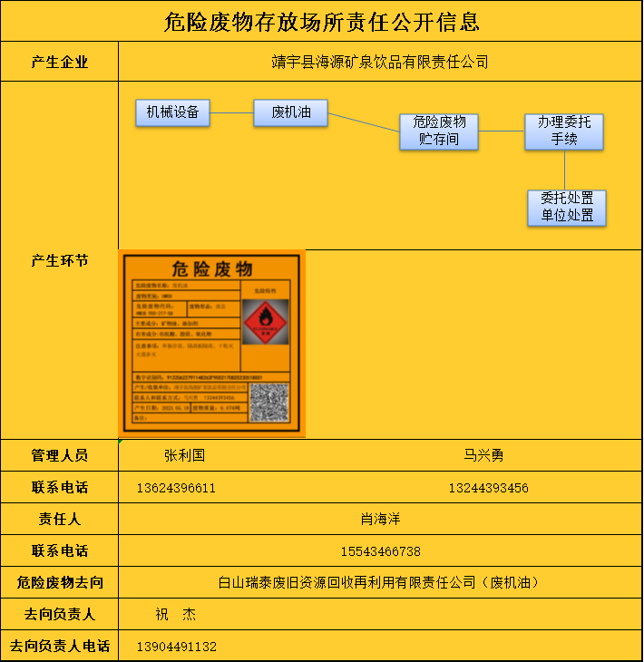 危險廢物存放場所責(zé)任公開信息